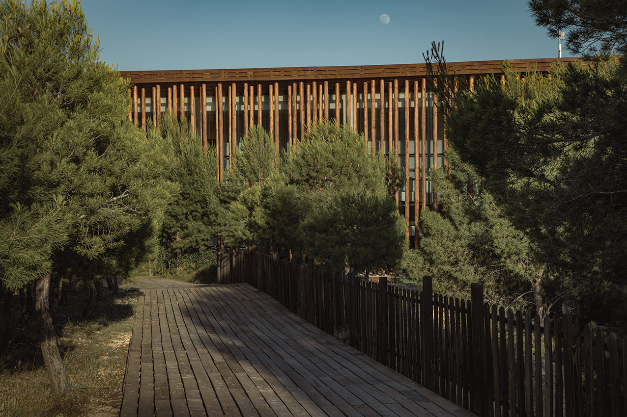 Sus volúmenes geométricos y su fachada acristalada permiten una integración armoniosa con el paisaje, mientras que su diseño ecológico reduce significativamente su impacto ambiental.